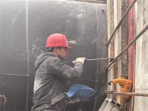 前几天,记者在温岭城南镇黄湾村的百丈岩隧洞出口处见到钱祖恒时,他正站在梯子上,贴着洞口的一排钢筋做焊接工作,蹭了一身灰。调整位置,一手举防护面罩,一手拿焊枪焊接,一阵阵“嗞嗞”声响起,焊接处一片火星四溅。