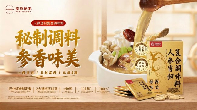 有没有可能,让滋养变得像呼吸一样自然?安然众合人参当归复合调味料,正是基于这样的思考。它无需你额外备药、研究方子,只需在炖汤、烧菜或吃火锅时,如常撒入。复杂的滋补智慧,被浓缩进一包寻常调料里,悄然融入每餐烟火。滋养,从此不必刻意安排,它就藏在每一顿你愿意为自己、为家人花心思的饭菜里。