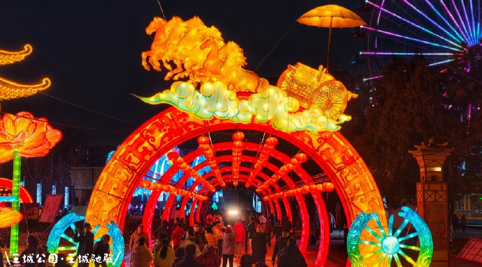 依托古城墙历史空间,将灯光艺术与盛唐文化场景融合,营造沉浸式夜游体验,是“历史场景型灯会”的代表。