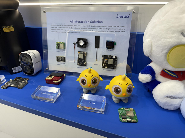 利尔达还进一步展示了备受关注的AI故事机及多款客户的AI玩具,通过集成利尔达Cat.1 bis模组实现了“插卡即用、广域连接”的功能,配合流式语音传输技术,打造出了沉浸式的AI语音交互体验。利尔达Cat.1 bis AI方案还可对接主流AI大模型,具备本地唤醒、回声消除和连续对话能力。凭借出色的长续航与随时随地的互动体验,这些创新产品不仅赢得消费电子展商的青睐,更印证了利尔达在推动“连接+智能”深度融合方面的领先地位。