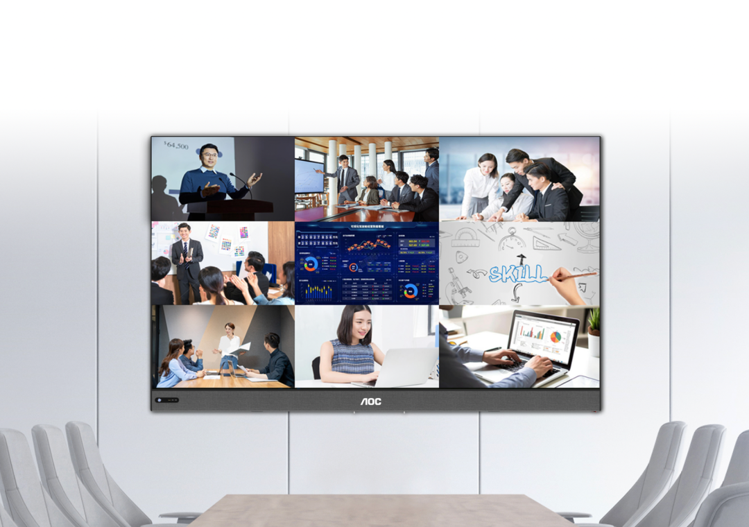随着现代商业形态的不断演进,企业的竞争力指数也变得更加多维。在高端会议场景下,富有科技感的办公空间也成为彰显企业实力的重要部署。AOC LED COB 一体机将工业极简美学与前沿科技完美融合,让会议室从 “功能空间” 升级为 “视觉艺术空间”。