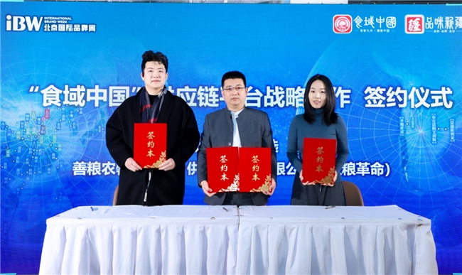 “食域中国”供应链平台分别与人民文创优选、主粮革命项目主体——善粮农馨(北京)供应链科技有限公司进行供应链合作签约