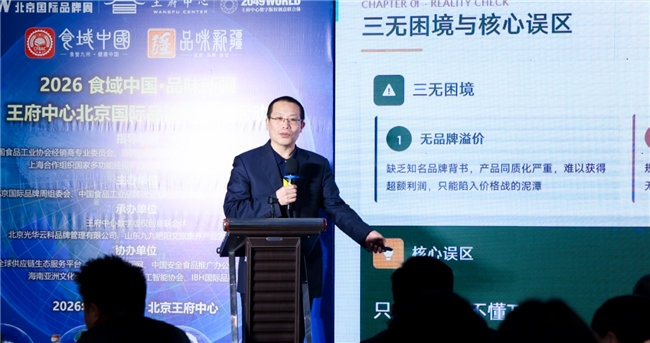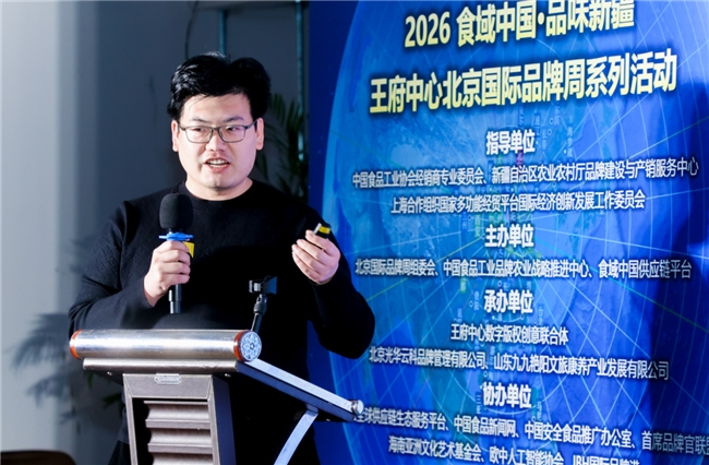 图:中国食品工业品牌战略推进中心主任、“食域中国”产业振兴计划项目发起人刘鑫淼详细介绍了“食域中国”产业振兴计划及平台发展蓝图。刘鑫淼主任介绍,“食域中国”项目是为支持响应国家全面乡村振兴战略和一号文件精神,由中国品牌农业战略推进中心、中国食品报社、中国食品工业杂志社、中国安全食品推广办公室等多家机构共同发起的“食域中国•地域美食产业振兴计划”项目,项目简称“食域中国”。“食域中国”项目以“讲好品牌故事,传承美食文化,推广地域特产,助力乡村振兴”为宗旨,借助国家级媒体资源和国家队品牌智库的高端平台优势,通过品牌赋能、文化赋能、科技赋能、媒体赋能、渠道赋能、电商赋能、人才赋能、政策赋能、资本赋能和大数据赋能等方式,助力我国区域特色产业“优势区”和“原产地”,深度发掘“地域美食、地理标志、土特产、老字号、非遗及药食同源产品”等优势资源,快速实现产业升级、企业增效、农民增收。
