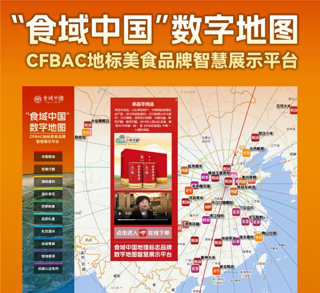 北京地球家园教育科技有限公司总经理马辰雨发布“食域中国”数字地图CFBAC地标美食品牌智慧展示平台。据马辰雨介绍,“食域中国”数字地图,依托WebGIS技术打造,以数字地图为载体,精准呈现全国地理标志品牌空间分布,系统化展示地标品牌全维度数字化信息,是面向公众的专业地标品牌线上展销服务平台。平台以“食域中国”供应链入选地标产品及地理标志代表企业电商数据为基底,结合品牌价值与行业影响力严选优质品牌,数字地图公开发布且持续动态更新,保障信息时效与权威;整合文字、影像、短视频、官方二维码、电商入口等多元资源,H5架构实现多终端适配,提升服务便捷性与覆盖面。
