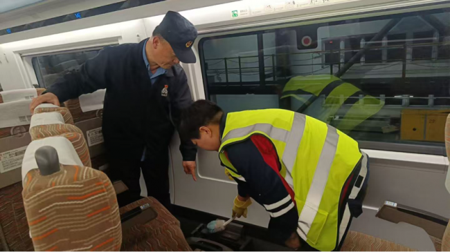 面对春运期间高铁动车组周转快、整备时间紧的挑战,车间优化作业流程,推行“网格化”管理。在郑州东动车所、郑州南动车所等关键整备点,整备人员实行“车停人不停”的轮班作业模式,利用列车入库检修的短暂间隙,争分夺秒开展深度保洁。针对车厢内扶手、小桌板、卫生间等旅客高频接触区域,严格执行标准,进行重点擦拭,确保出库卫生质量。
