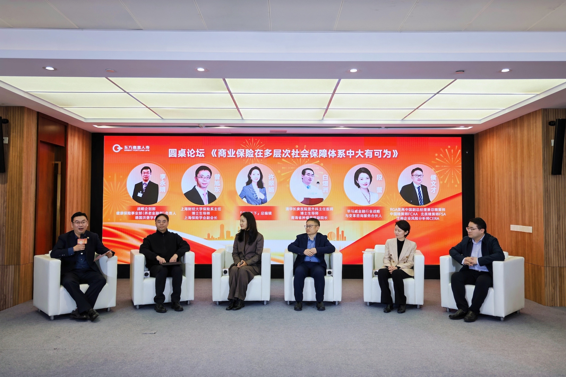 会议期间举办了题为《商业保险在多层次社会保障体系中作用》的圆桌论坛。上海财经大学滴水湖高级金融学院院长曾旭东、慧保天下总编辑许翠娟、美再中国总精算师侯文才、毕马威合伙人段蕾及中组部援青专家团副团长白熠洲等行业顶尖专家受邀出席。
