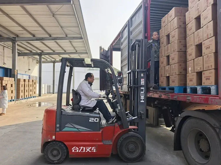 神丹公司工人将蛋品装车,发往湖南长沙